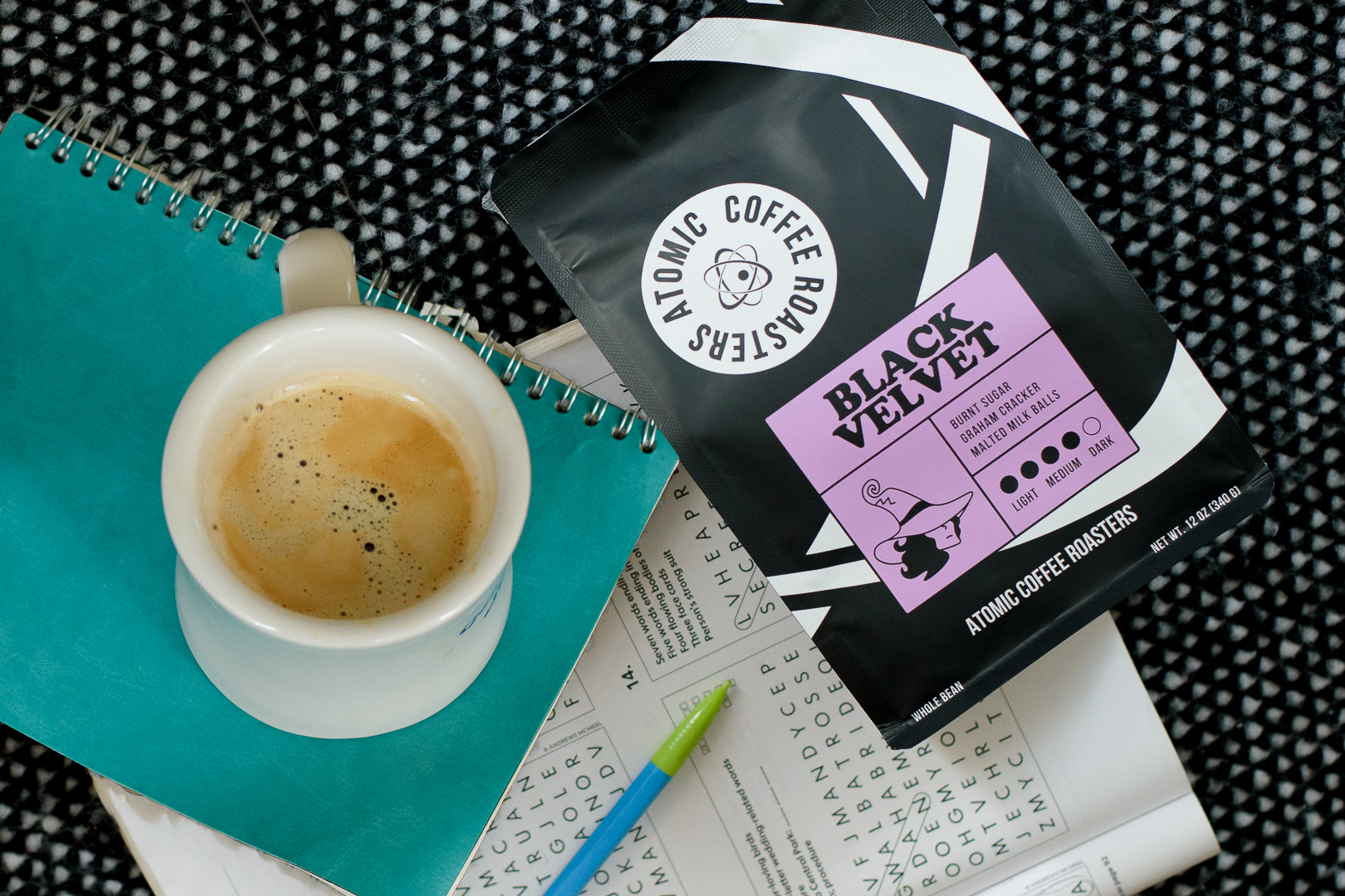 Black Velvet is our smoothest dark roast, crafted to deliver deep, rich flavor without the bitterness you’ll find in most coffees this bold. During roasting, we extend the Maillard phase to highlight burnt sugar, toasted cocoa, and malted milk balls. Inspired by our Salem roots, it’s a little mysterious, a little magical, and it’s about to be your new daily dark roast.